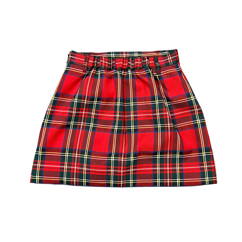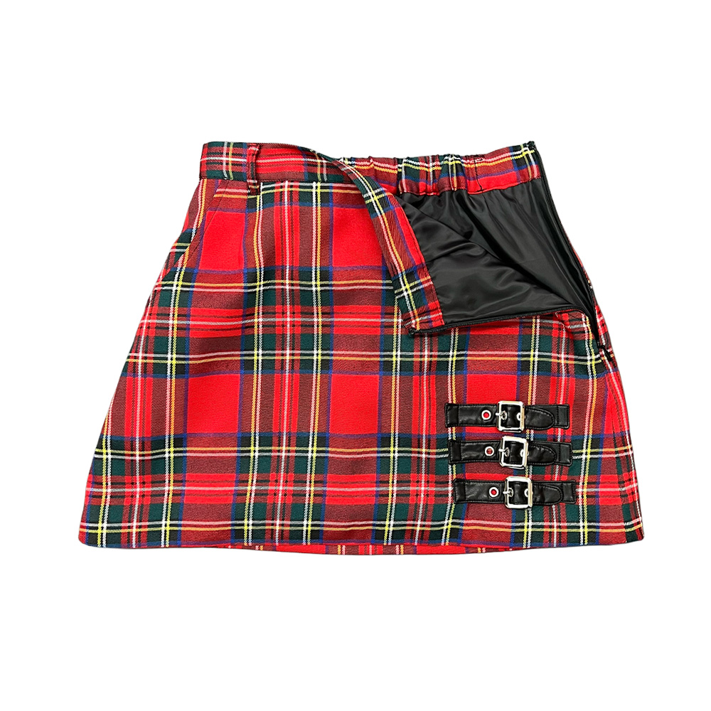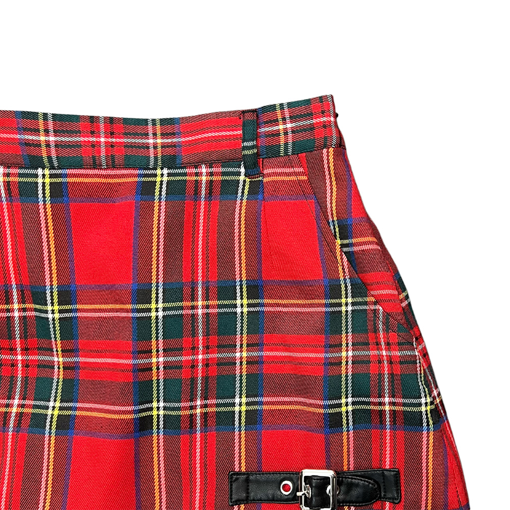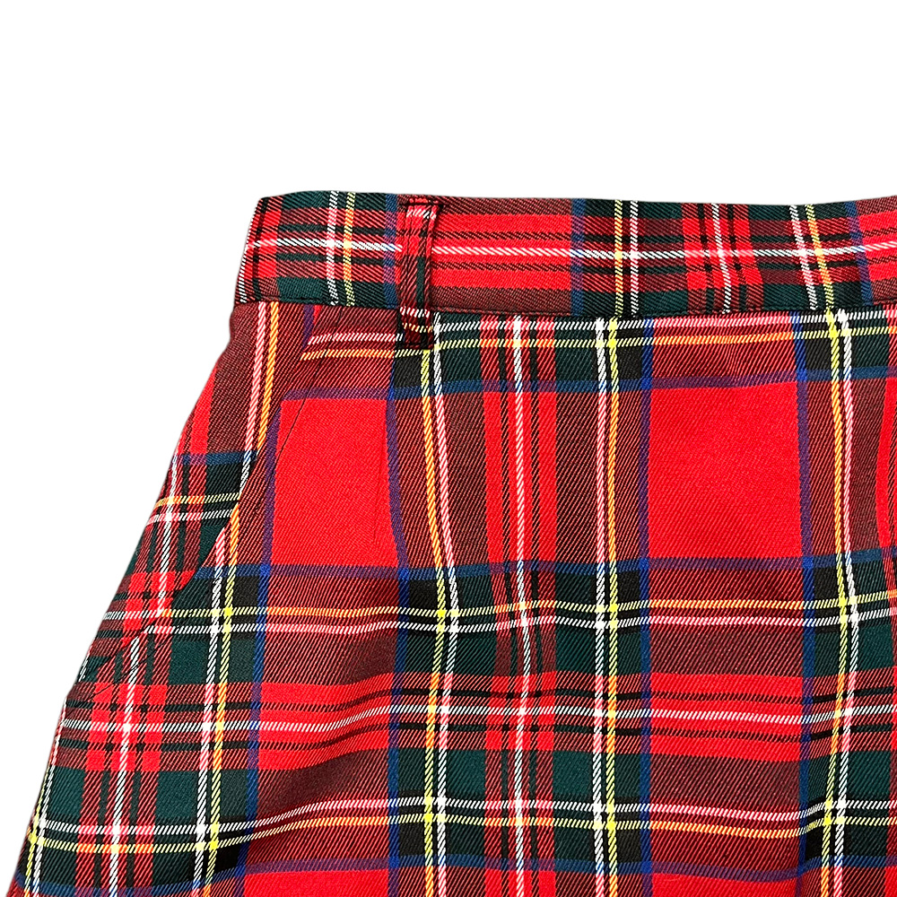 赤をベースにしたクラシックなタータンチェックが印象的なミニスカート。