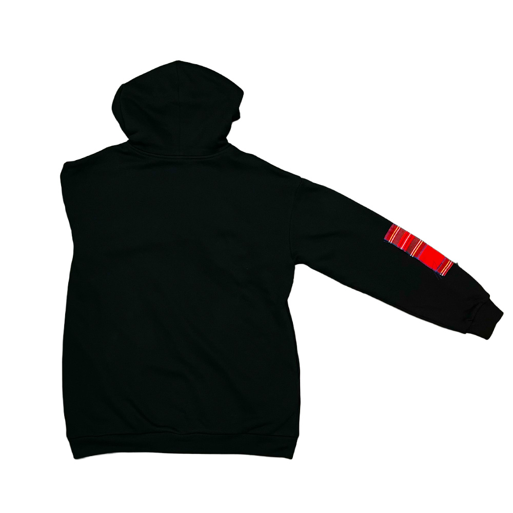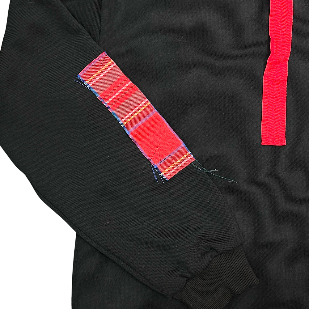ブラックベースに映える赤のディテールが印象的なストリートパーカー。