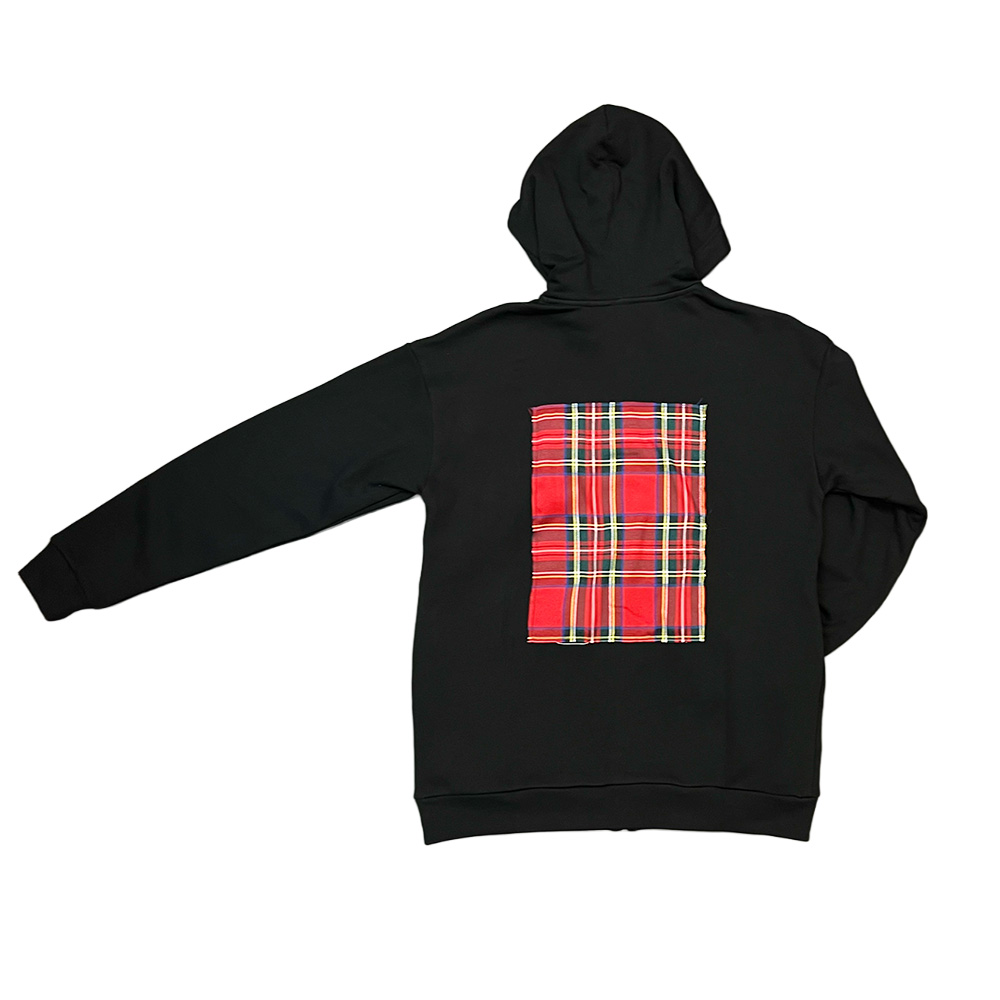 フロントには新作グラフィック、バックには赤のタータンチェックパッチを大胆に配置したジップパーカー。