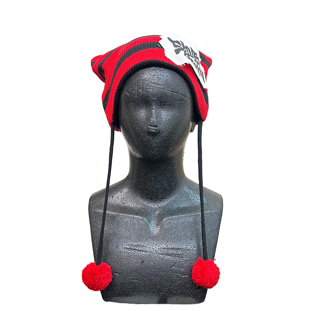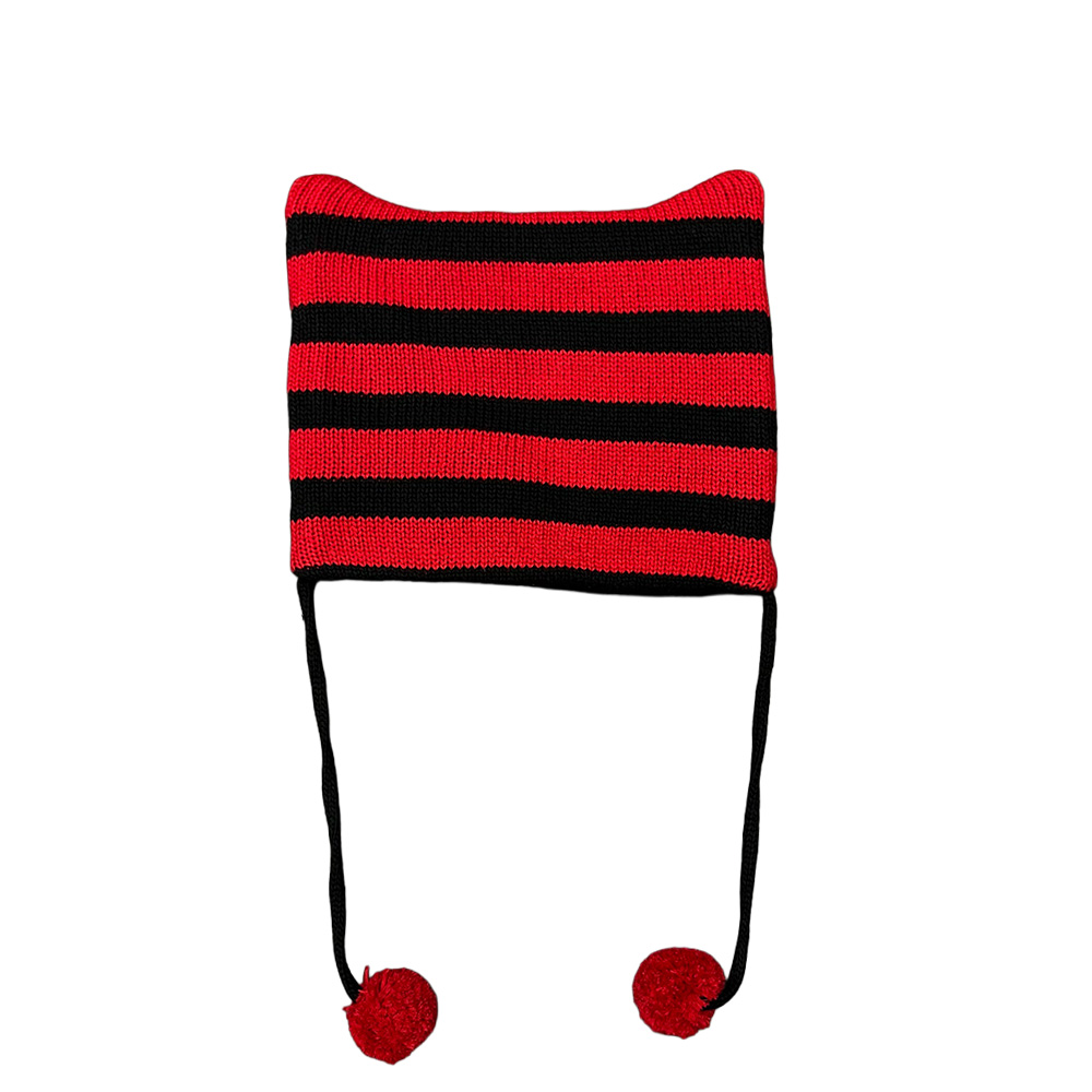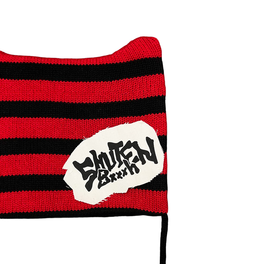 ボーダー柄にグラフィティロゴを組み合わせた、ストリートテイストのキャットハット。