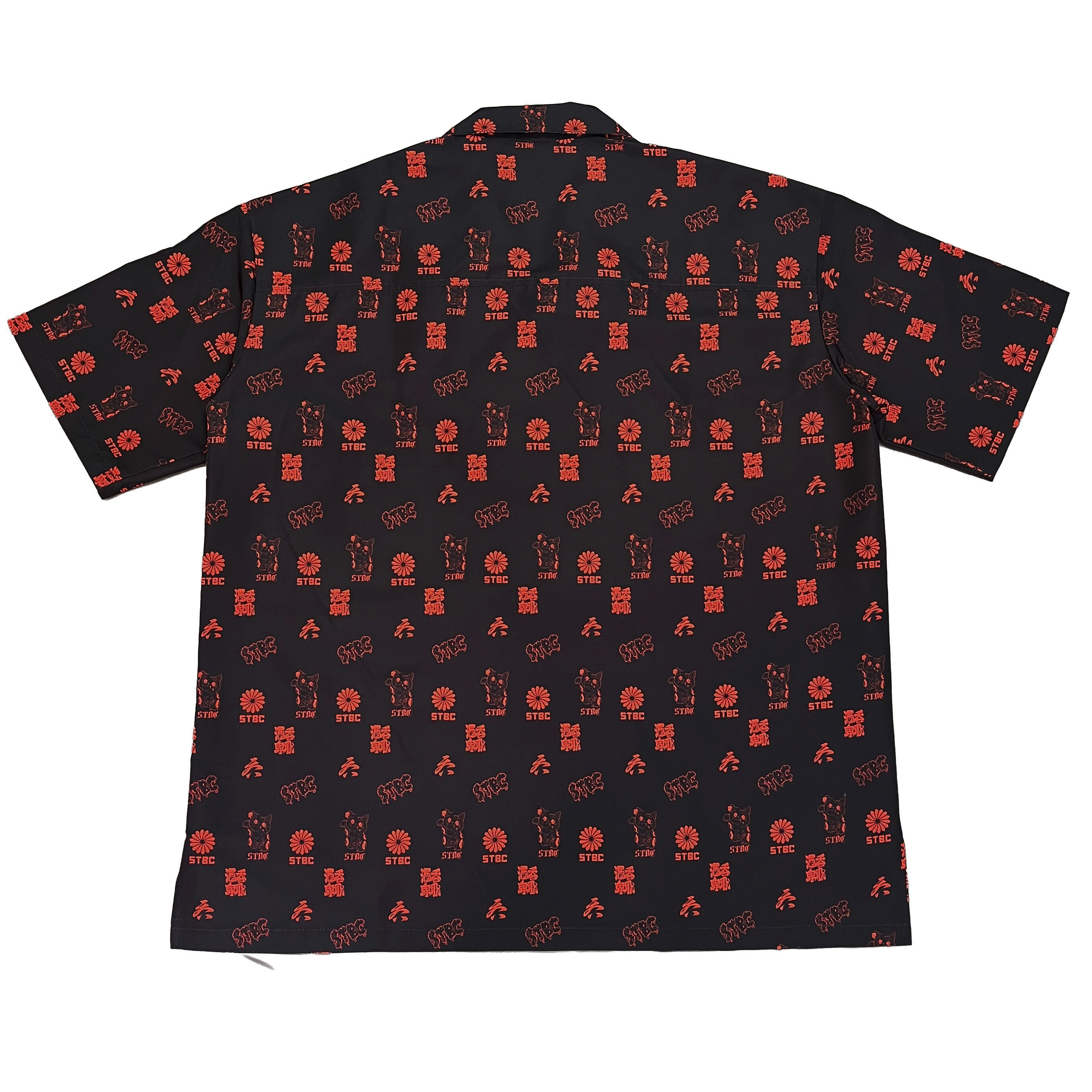 総柄グラフィックが目を引く、存在感抜群のオープンカラーシャツ。